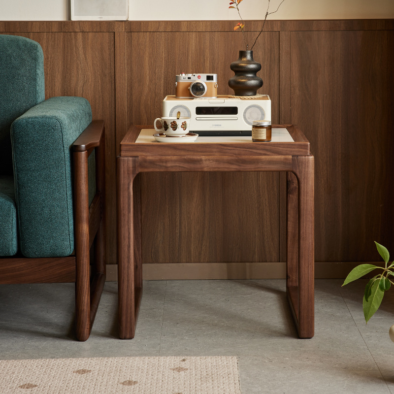 Yamoo北米黒胡桃木角数北欧実木岩板辺数家庭用リビングソファー創意小サイドテーブル