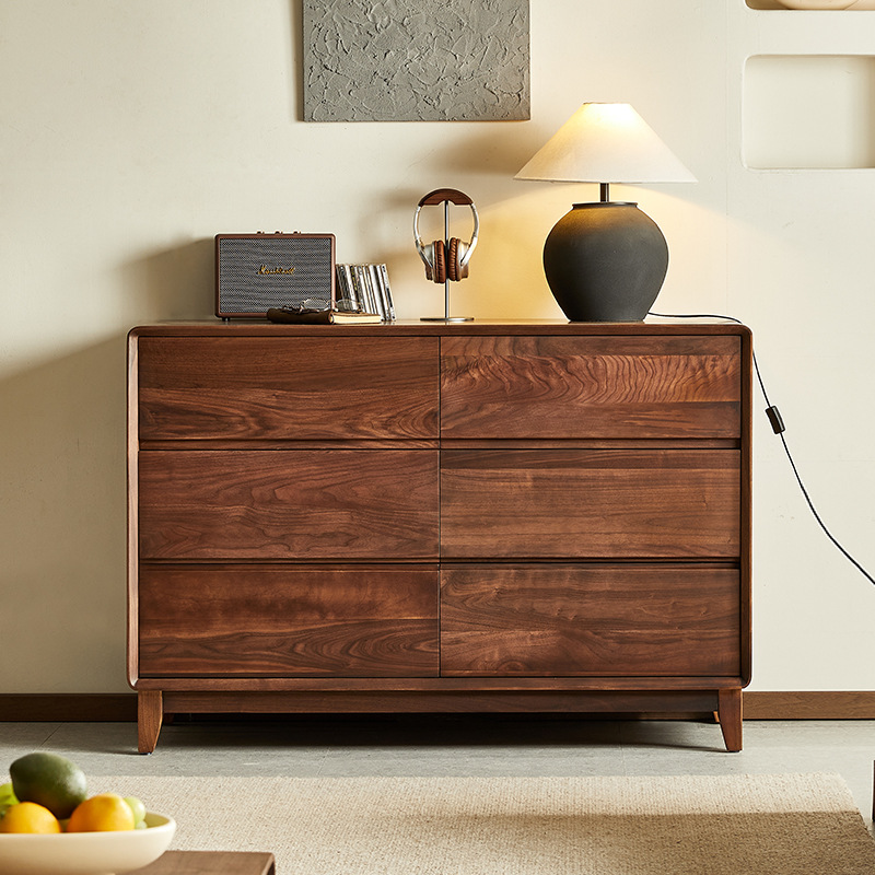 Yamoo北米黒胡桃木六斗盤北欧シンプル全実木斗盤家庭用寝室引き出しロッカー