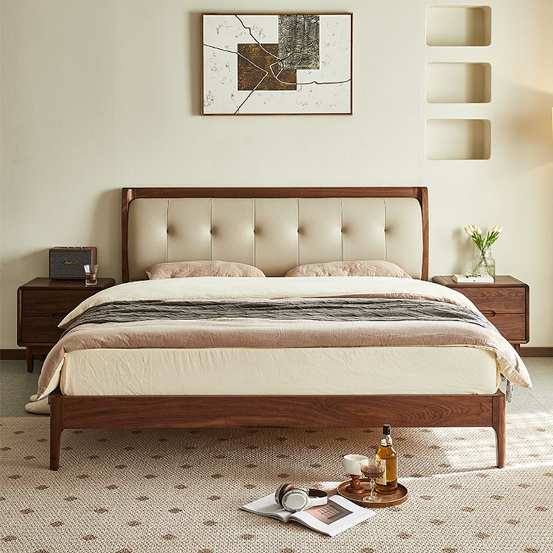 Yamoo北米黒胡桃木軟包ベッド北欧シンプルで豪華な全実木ベッド家庭用主寝ツインベッド