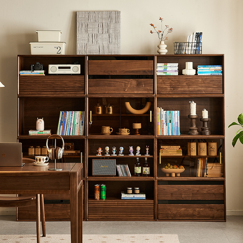Yamoo北米黒胡桃木実木本棚リビング収納モジュールキャビネット家庭用自由組み合わせ収納キャビネット