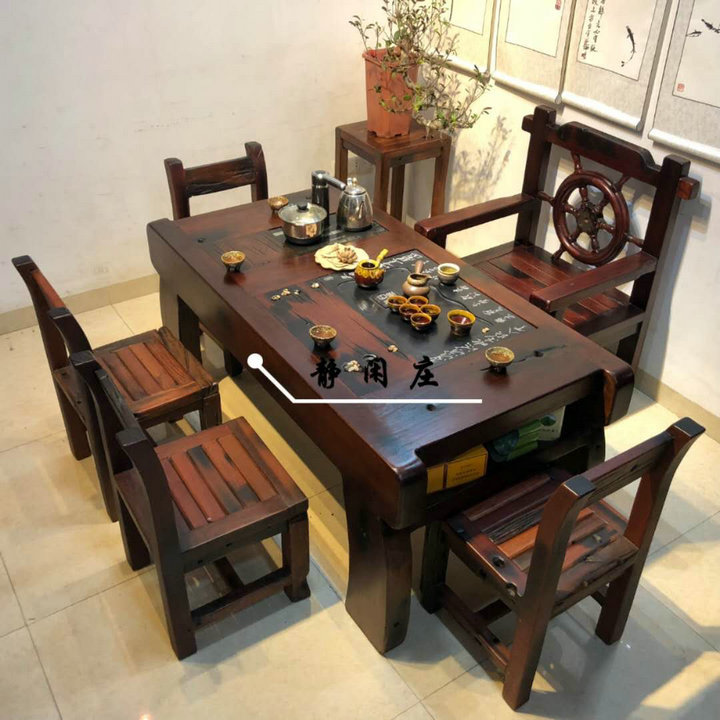 中国式食卓シンプル家庭用レジャーテーブルと椅子の組み合わせ長方形の食事テーブルとお茶のテーブルとお茶のテーブルの家具