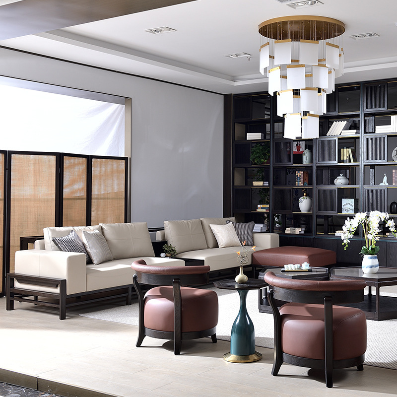 新しい中国式のソファーの実木のソファーの組み合わせの現代の簡単な客間の軽い豪華な小戸型の真皮の新しい中国式の家具
