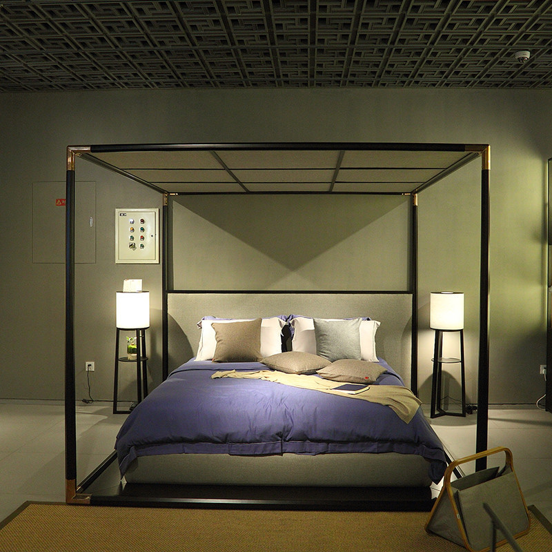 新しい中国式のベッドの実木のベッドのダブルベッドの現代の簡単な棚のベッドの名宿会の見本の部屋の主な寝室の家具