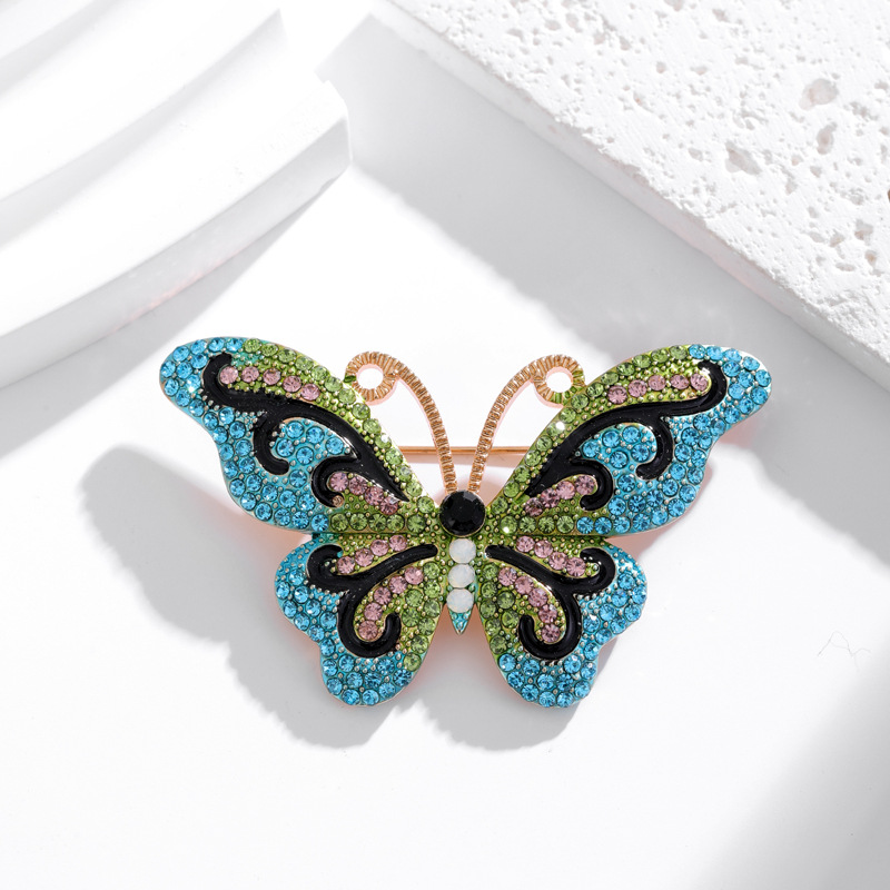 欧米の模擬蝶のブローチの合金の立体はダイヤモンドの高級なピンの高級なレトロな質感のスーツのアパレルの装飾を入れます。