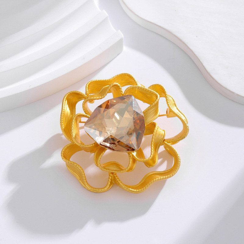 中古の高級感のツバキの花のブローチのデザインの個性の水晶の五弁の花の優雅なコートの胸の花のファッションの装飾