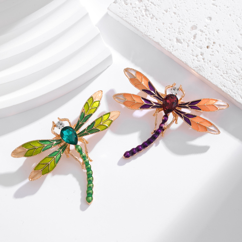 日韓の風の水は油の緑色のトンボの昆虫のブローチを垂らします。