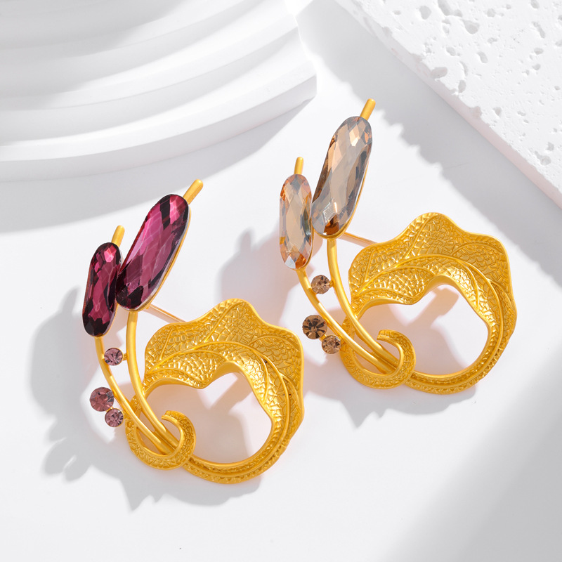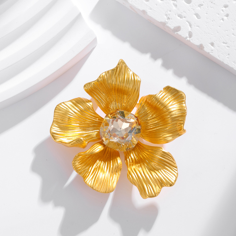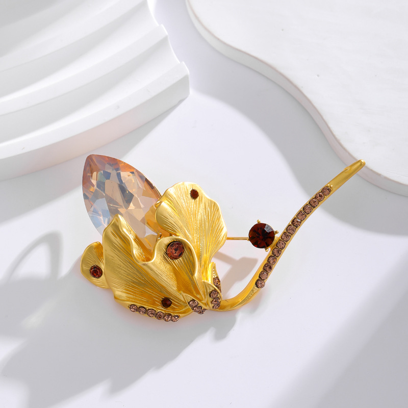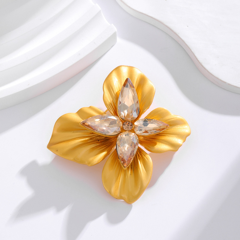 中古ヴィンテージ四葉草蝶花ブローチファッション誇張花胸花胸花水晶贅沢アクセサリー