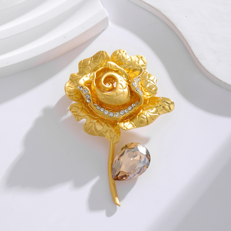 中古のヴィンテージ高級デザイン感のあるバラのブローチ
