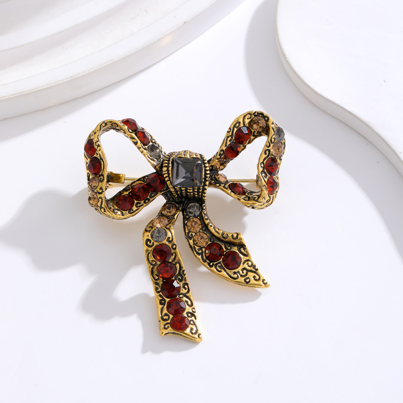 小衆高級感フランス優雅蝶結びブローチ赤レトロ気質ピン女性精致スーツ胸花潮