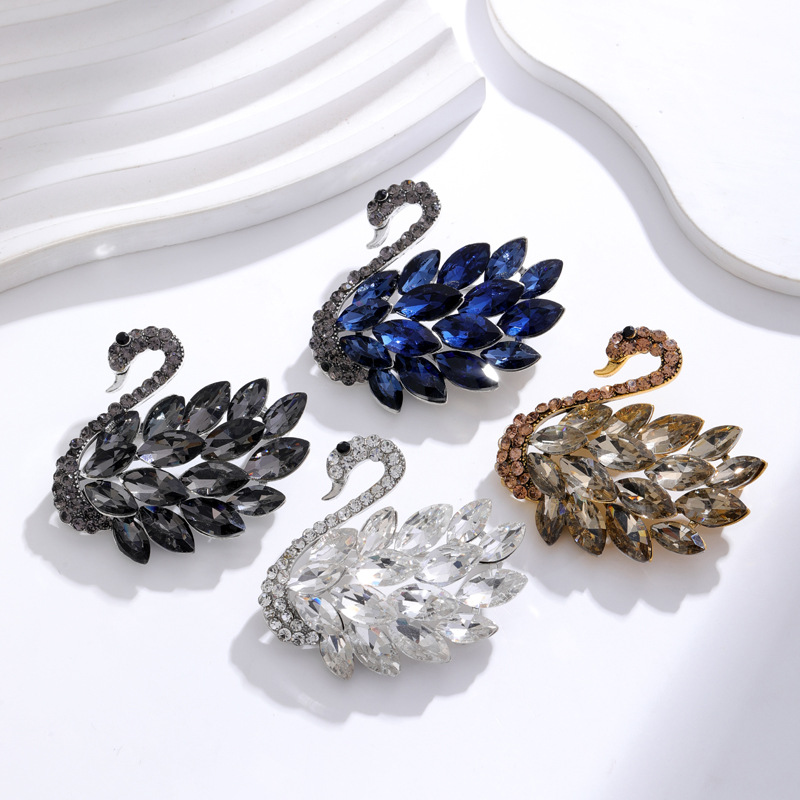 日系かわいい高級白鳥ブローチ女性韓国ファッション水晶ジルコン洋服胸花セーターピン飾り