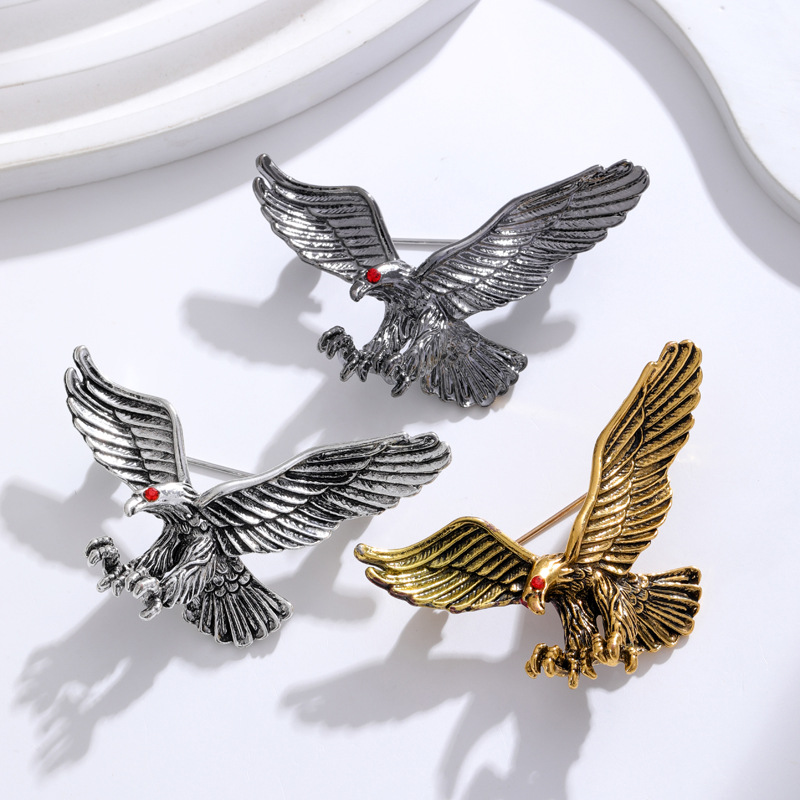 シンプルな風の男性の動物のブローチ日韓の潮の男女の百合は赤い目のタカのブローチのピンを入れて飾ります。