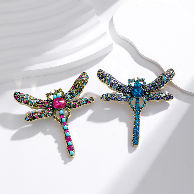 欧米のトンボのブローチの高級な水ドリルの軽い豪華なレトロな昆虫の動物の胸の花のオーバーのスーツのシャツのピンの装飾