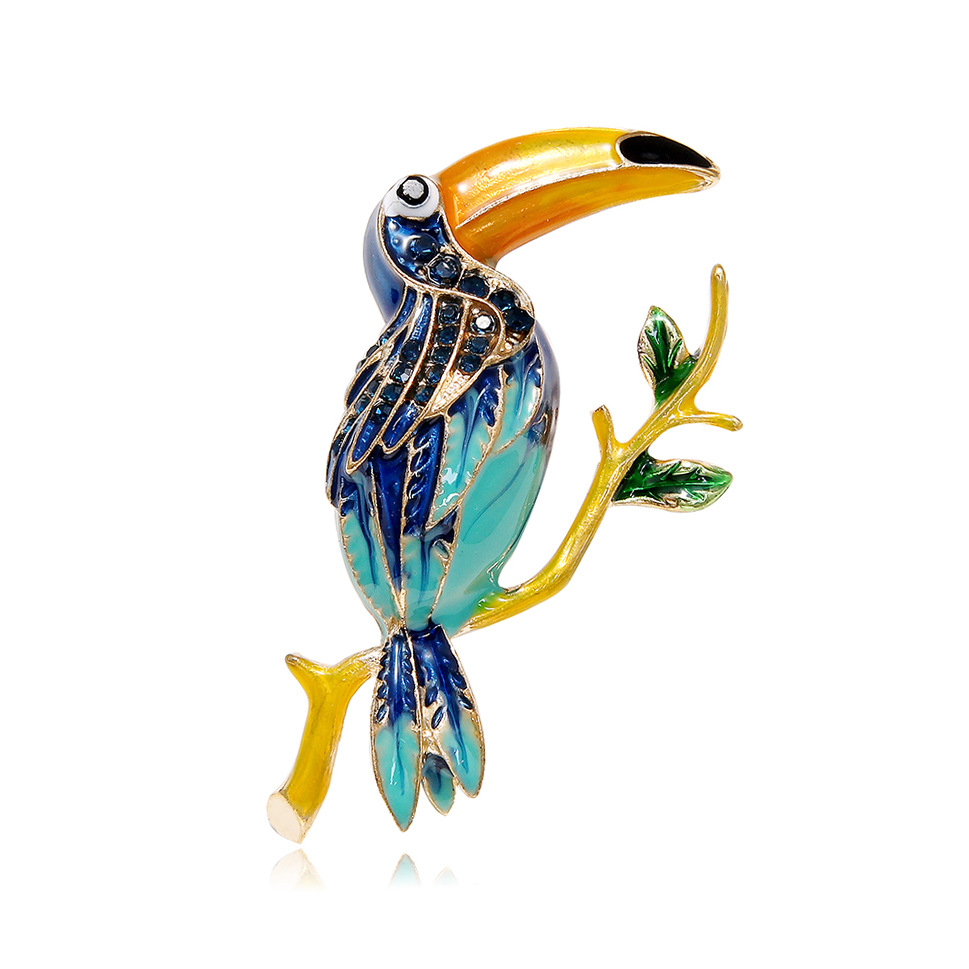 シンプルで個性的な大きな口のオウムのブローチ合金の滴油の色絵の小鳥の胸の花のピンのスーツは現物を飾ります。