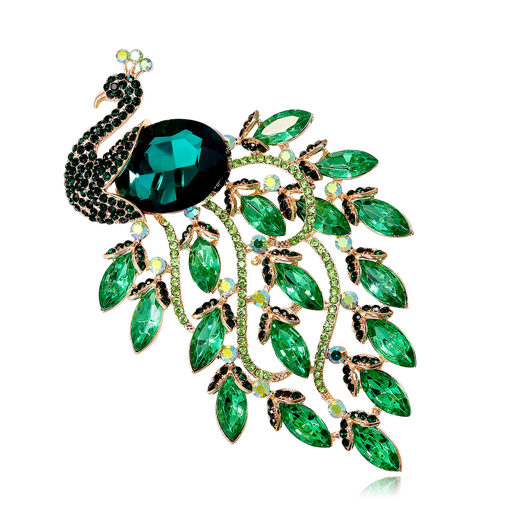 新型欧米のファッションは誇張して個性の孔雀のブローチの合金はダイヤモンドの動物の胸の花のシンプルな洋服を入れて飾ります。