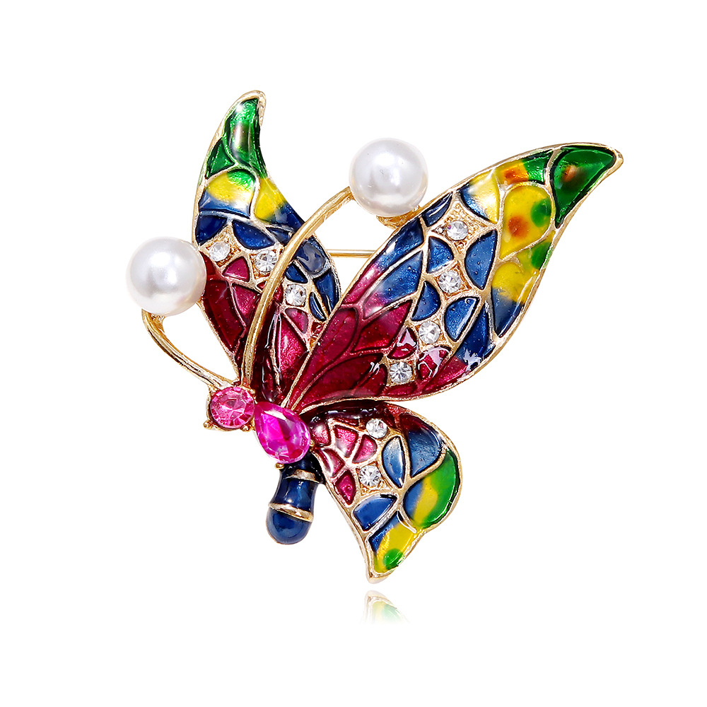 欧米の人気モデルの個性的なオイルカラーの蝶のブローチのファッション動物の胸の花の服装は現物のバッチを飾ります。