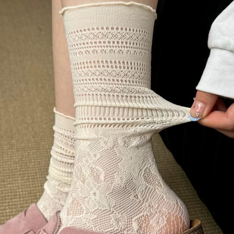 夏の白い靴下春夏の薄い靴下の女性の透かし彫りメッシュjkソックスins通気性吸汗綿の靴下の女性