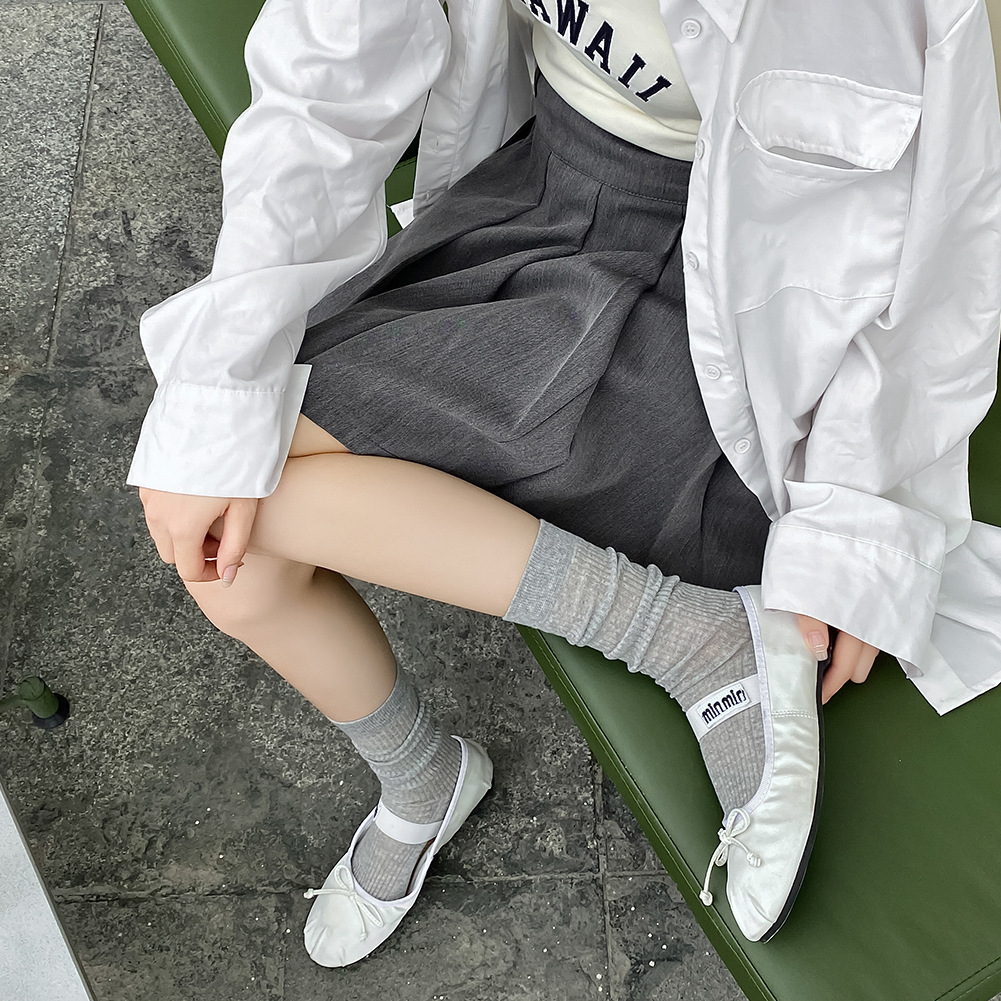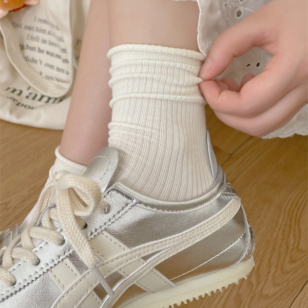 抗起球春夏無骨純色巻き縁縦条女月子靴下薄い通気綿松口中筒スタッキングソックス