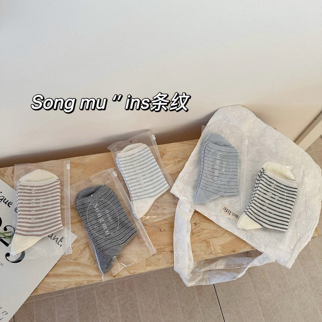 Songmu「韓系無骨条靴下子供の中筒靴下春夏新品百合綿質スタッキングソックス韓国ins