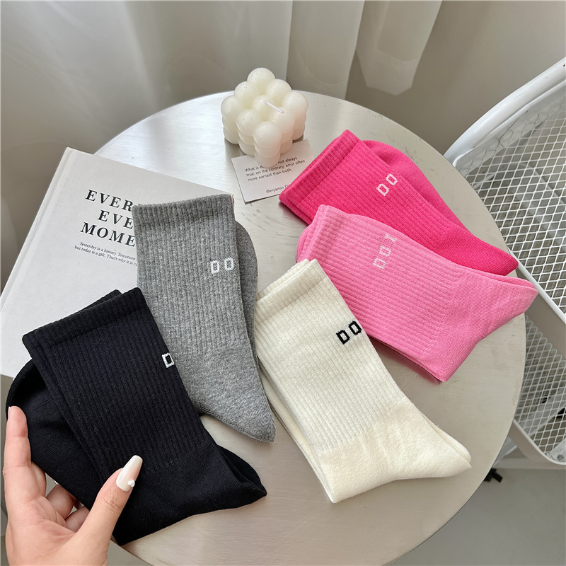 ドーパミンのピンクの靴下の女性insの新型のネットの赤いアルファベットの積み重ねの靴下の百合の運動の中で筒の靴下のレジャーの綿の靴下
