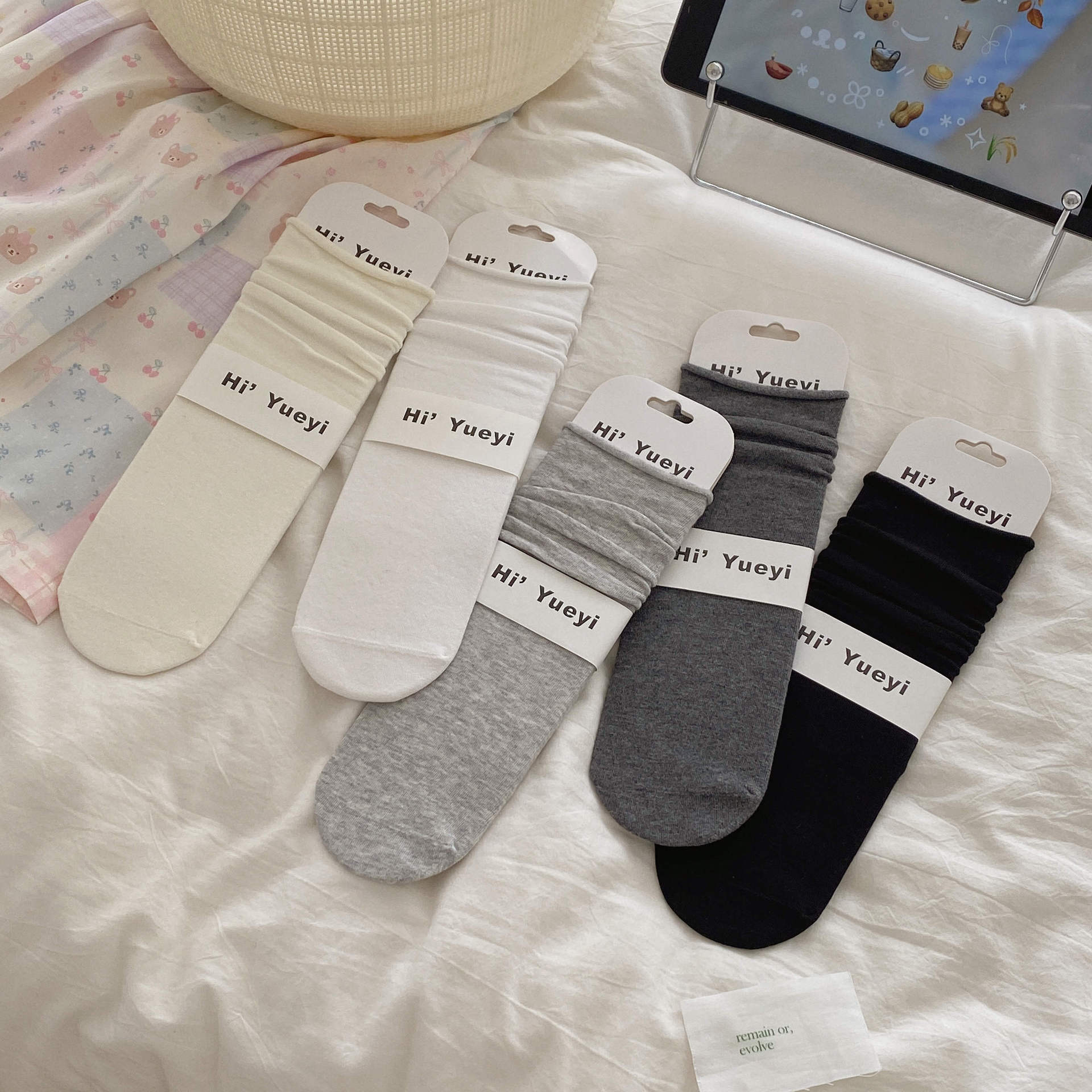 Hio nayean二重iu系グレー系靴下春夏新品薄い女性ins純色スタッキングソックス女性