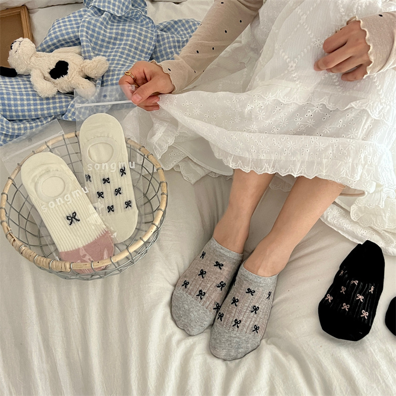 2024春夏の新型靴下の女性のかわいい蝶結び綿の韓国版の女性の船の靴下の女性の見えない靴下のカバー