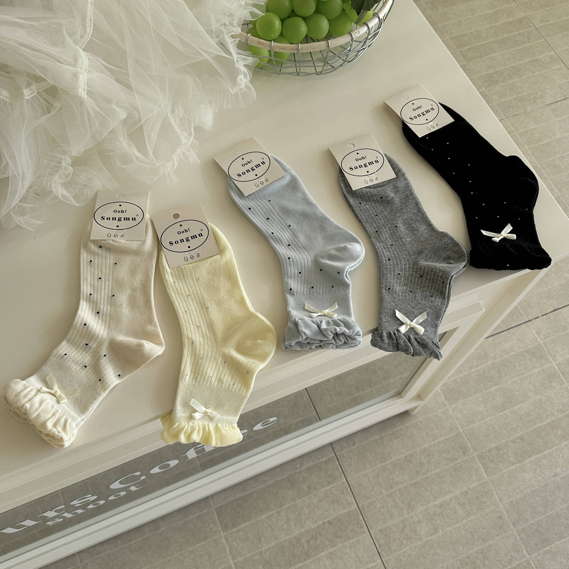 Songmu' 小さな蝶結びのつぼみの口の骨のない靴下の子供の春夏の新商品の波は韓国系insの中で靴下の女性を注文します。