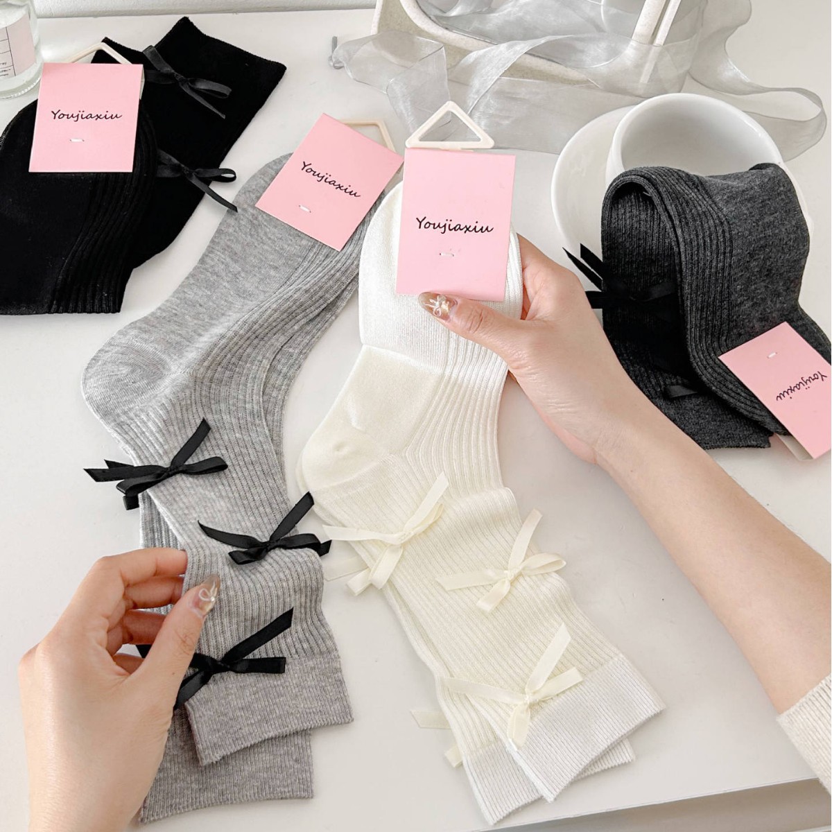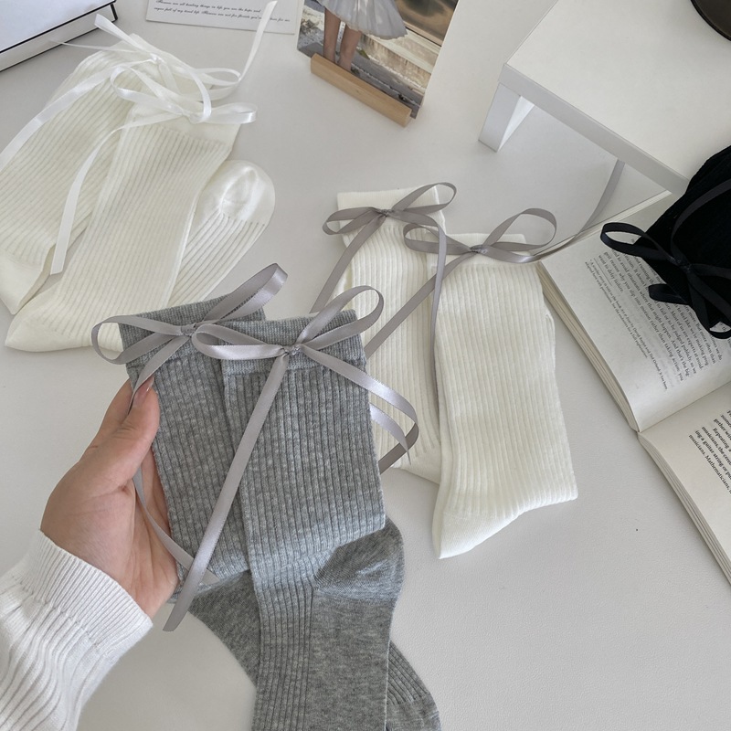 バレエ風少女蝶結び靴下中筒靴下女性ins夏の薄い日系甘いjk風スタッカ靴下