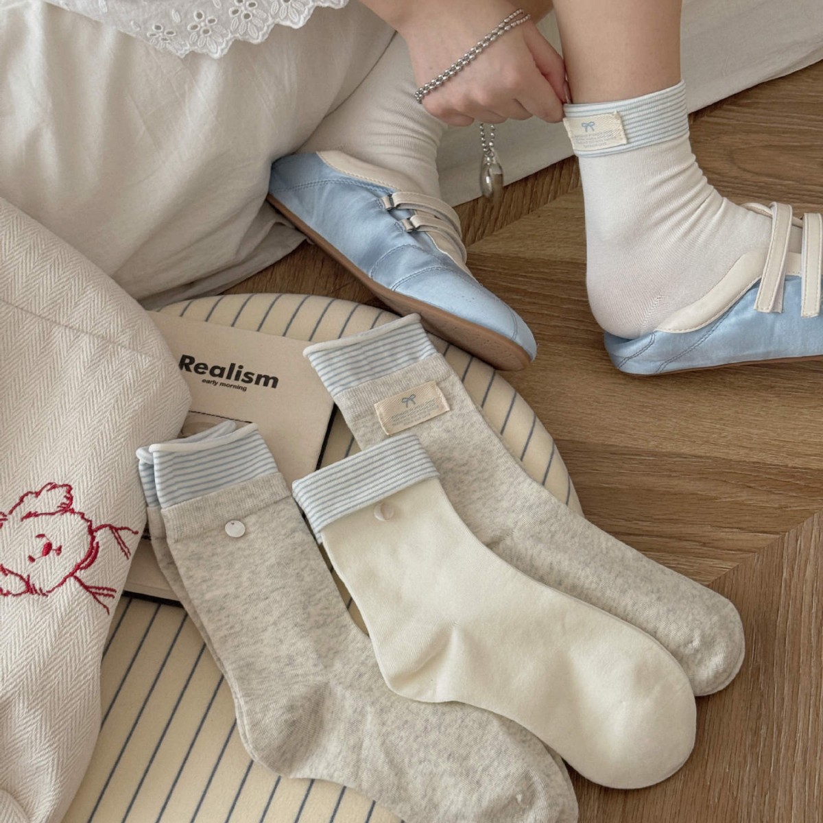 Songmuデザイナーの「ブルーグレー系靴下中筒靴下春夏新品小衆オリジナル韓国版スタッキングソックス