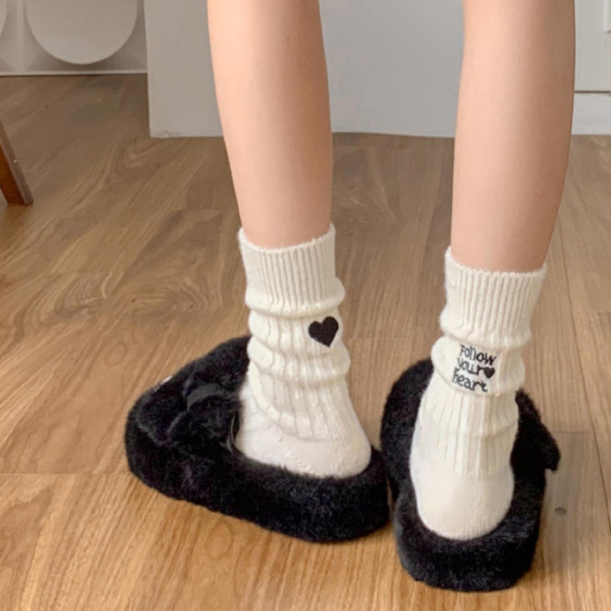 秋冬の鹿の毛の積み重ねの靴下の純色のかかとAB刺繍のinsの潮の中で筒の靴下のカシミヤの靴下は厚い保温の靴下を作ります。