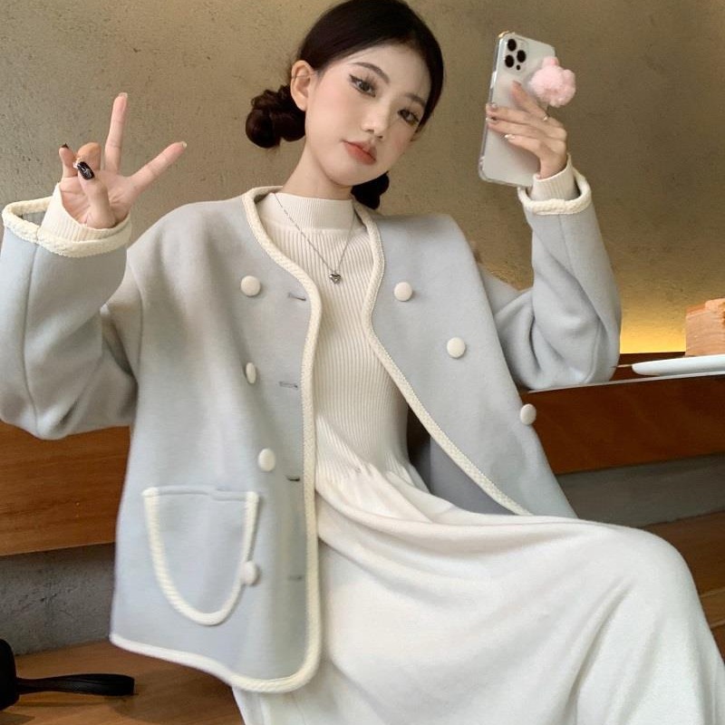 半高襟ニット長袖ワンピース小香風毛ですね。コートの女性秋の新型流行ファッションの美しいスーツです。