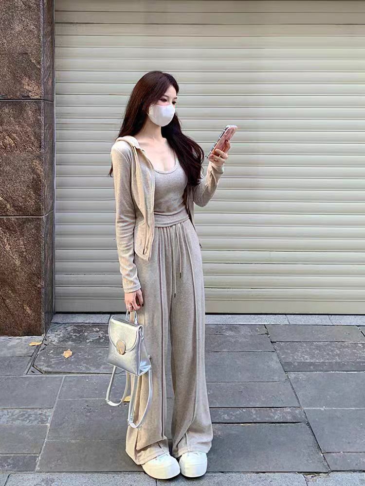 カジュアルスポーツウェア2点セット2023春と秋の薄いファスナーのスウェットのコートファッション高級感のあるズボンのスーツの女性