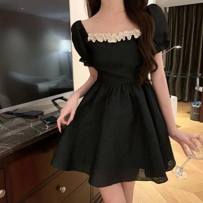 オリジナルの品質ワンピース女性の夏の泡袖の高級感のある大衆がプリンセスのスカートを脱いで腰の蓬蓬のスカートを収めています。
