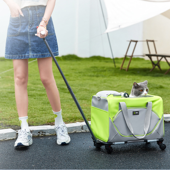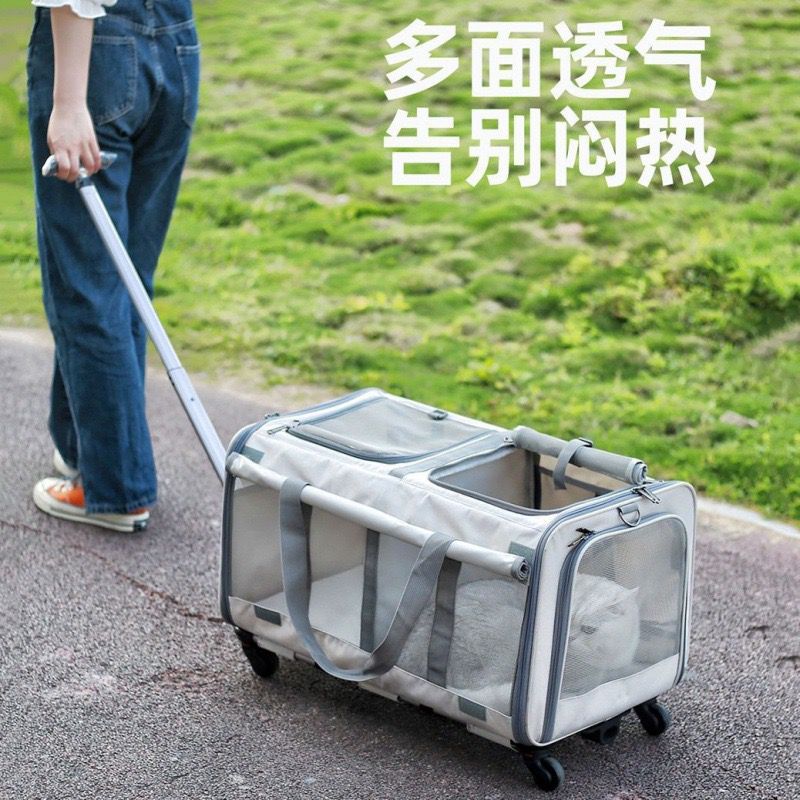 メーカー直販万向輪ペットスーツケース大容量ハッチバック携帯用斜めがけ折り畳み式通気性猫バッグ