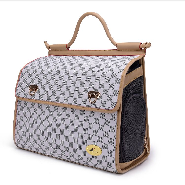 ペットバッグ外国貿易犬バッグ猫バッグpu格子縞色ペット外出携帯バッグペットバッグ通気メッシュ