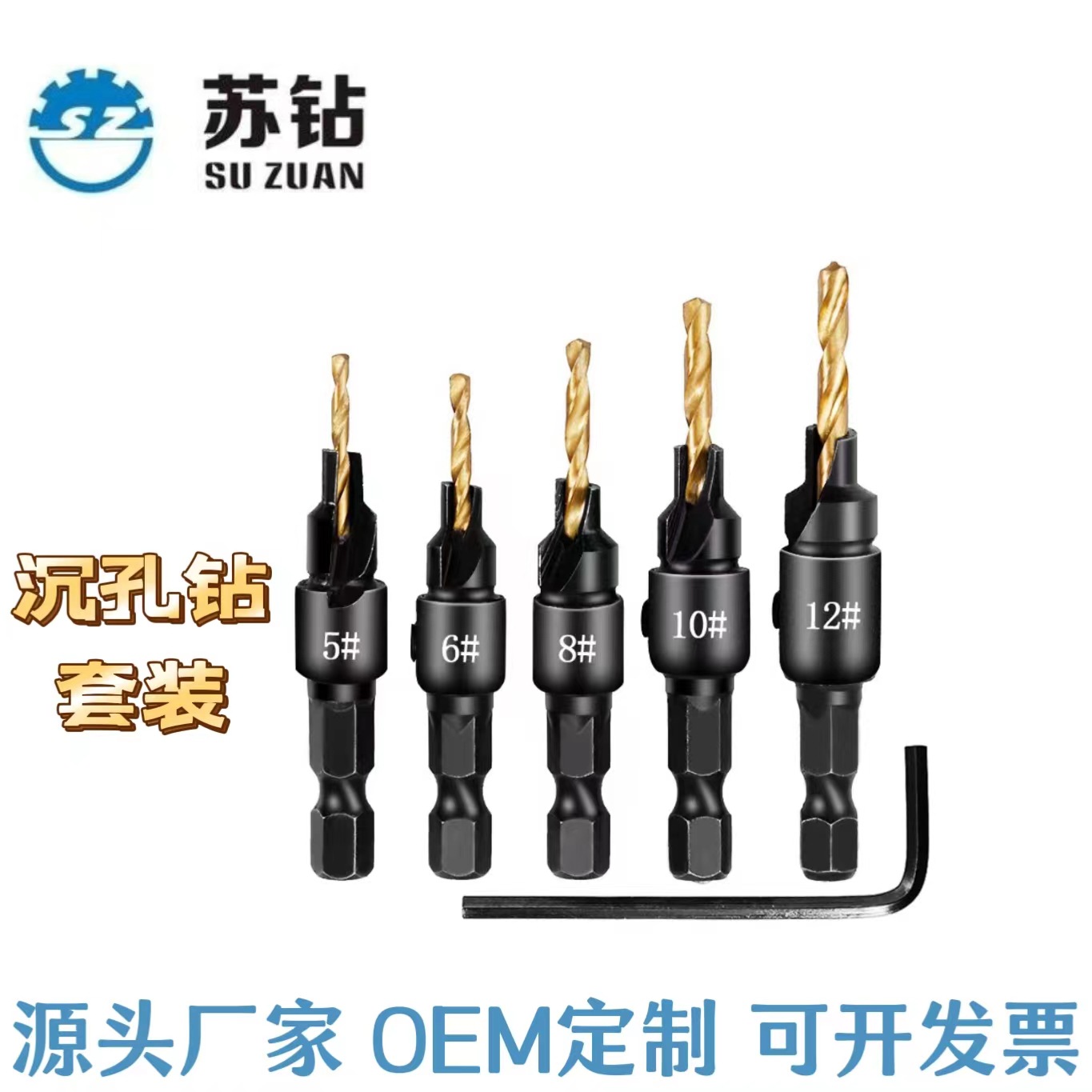 蘇ドリル六角柄木工皿ドリル高速鋼チタンメッキ穴面取り一体麻花ドリル木工皿ドリル