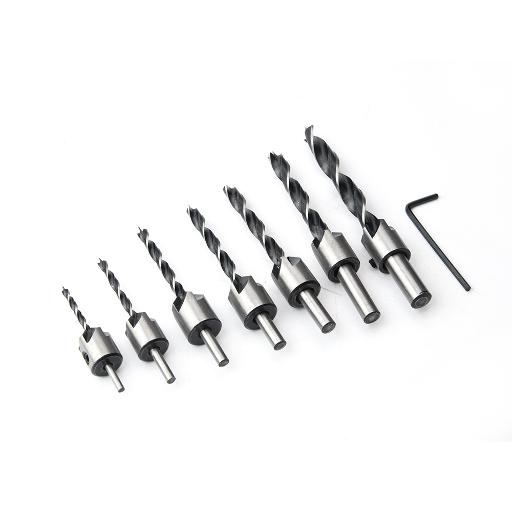 7pcs三尖木工皿ドリル穴拡げドリル木工面取り器3-10mm木工皿穴ガイドドリル