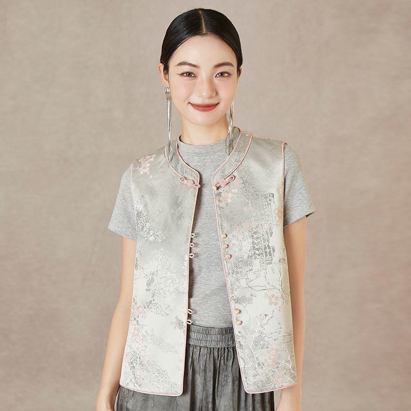 2025新型春秋改良新中国式軽国風ジャカードベスト婦人服高級ベスト女性民族風上着