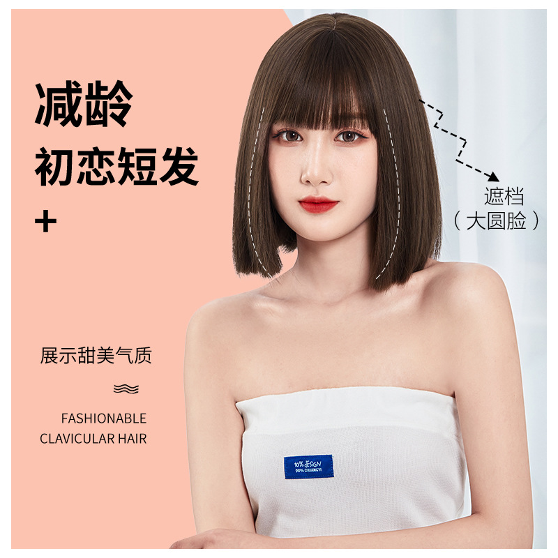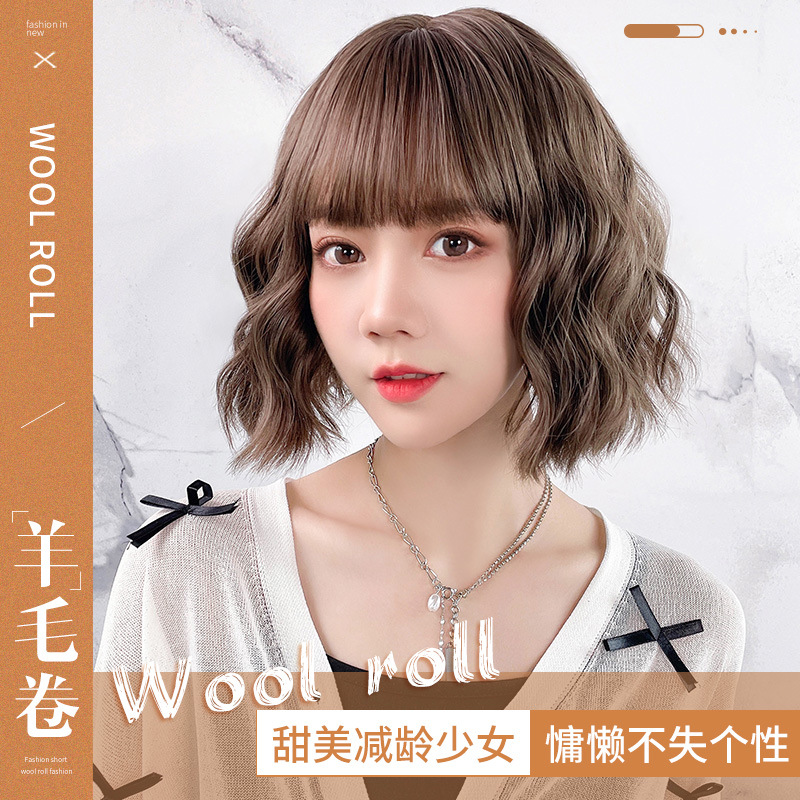 かつらの女性の短い髪のネットの赤いboboの頭の夏の韓国のデザインの空気の前髪は顔を修理して年齢を減らします。