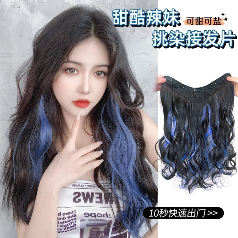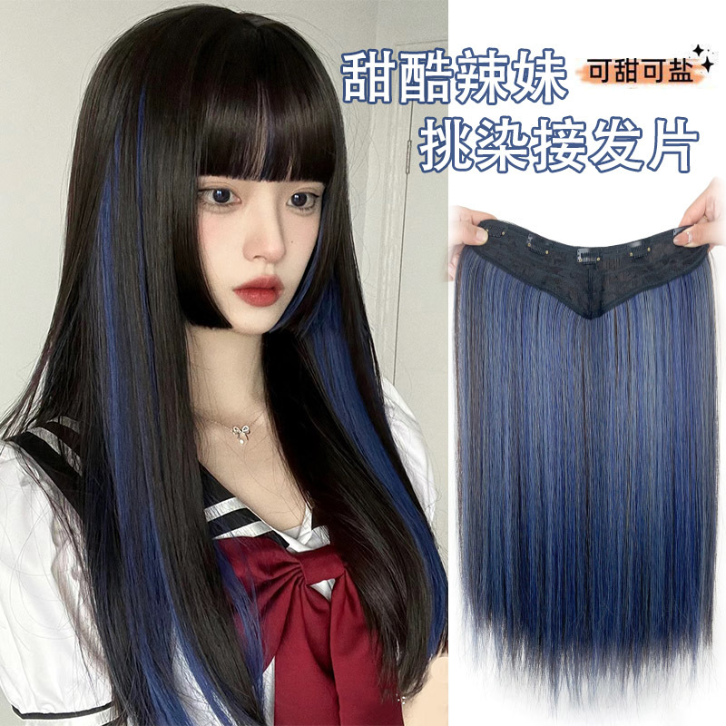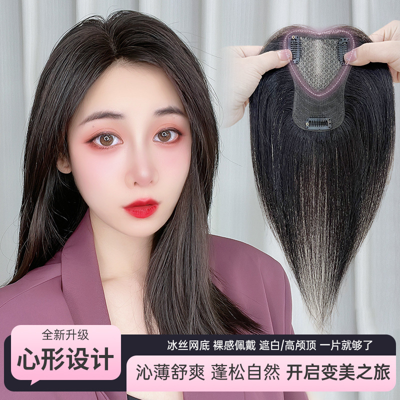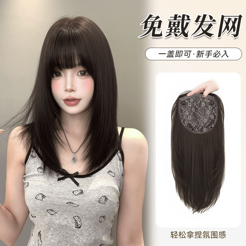 女性用ウィッグ、ロングストレートヘア、ネットセレブ、自然ふわふわ頭上ヘアピース、リアルなエア前髪、ヘアネットなし