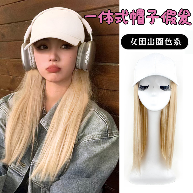 (超顔が小さい) 帽子のかつらの一体の女子学生の甘美な長い髪のネットの赤い野球の帽子は全頭を覆います。