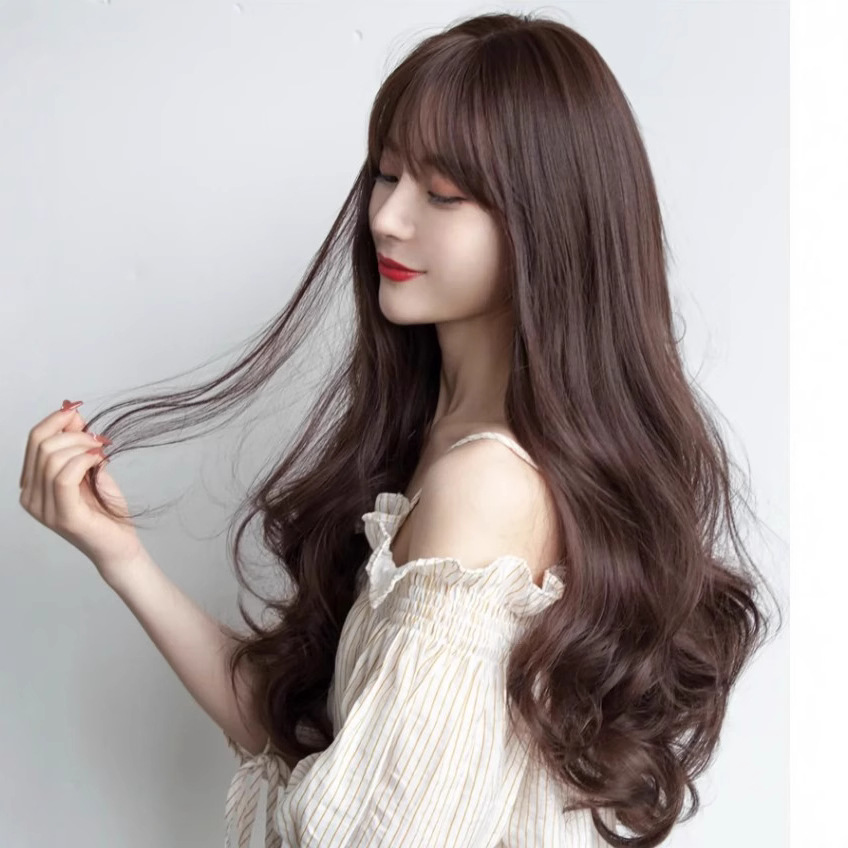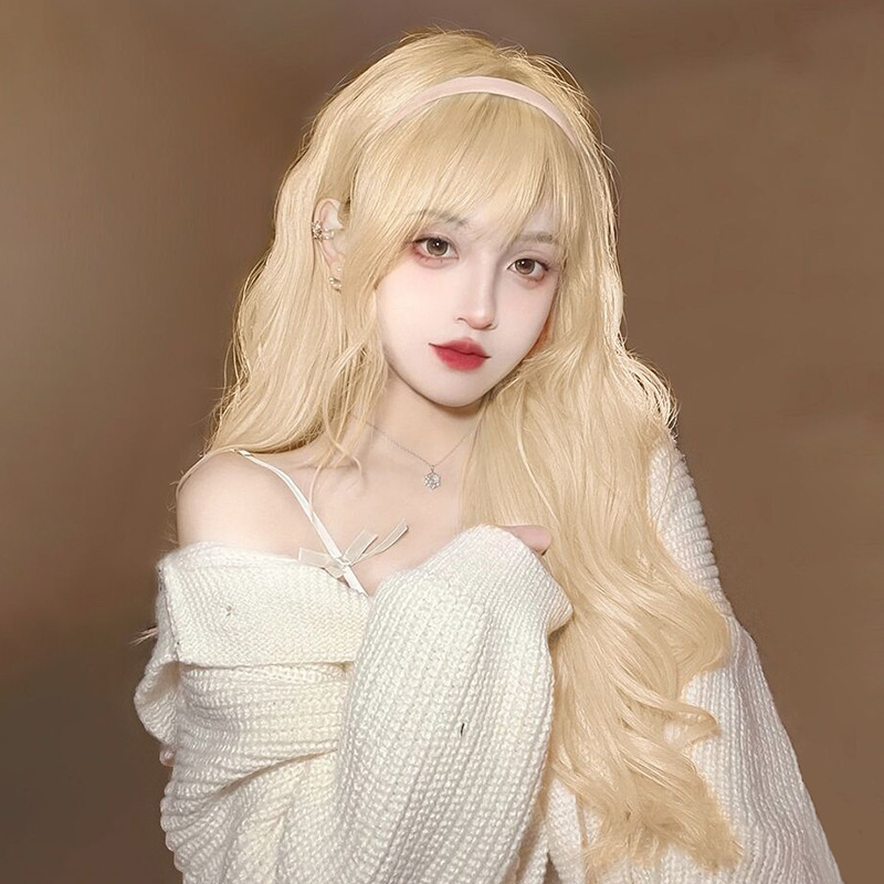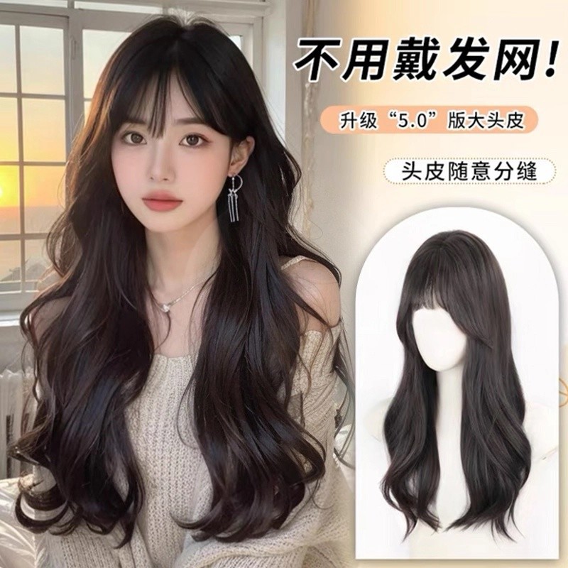 女性用ウィッグ、大きなウェーブのかかったフルヘッドギア、ふわふわの長い巻き毛、エア前髪、フルヘッド、ネットなしのインターネットセレブの水波巻き