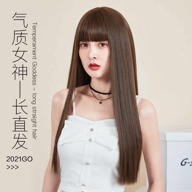 かつらの女性の長い髪は自然に全部カバーします。