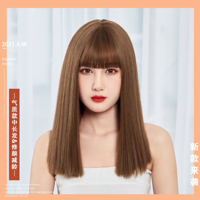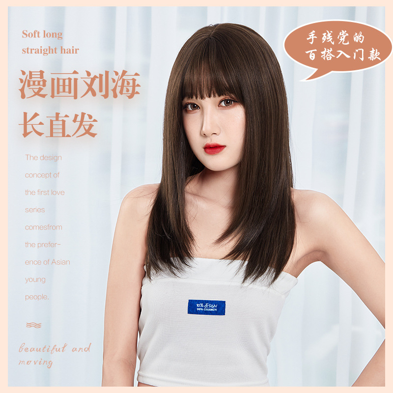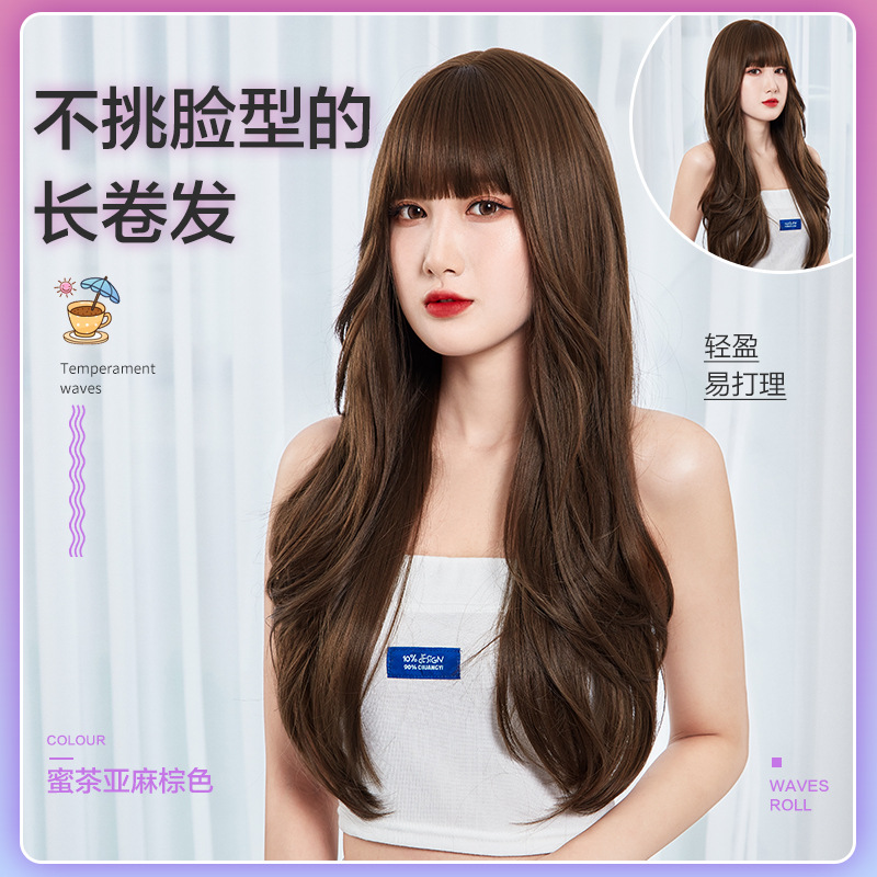 かつらの女性の長い髪の夏の大きい波の空気の前髪のネットの赤い韓国式の髪形の長い巻き髪の自然なリアルな全体のカバー