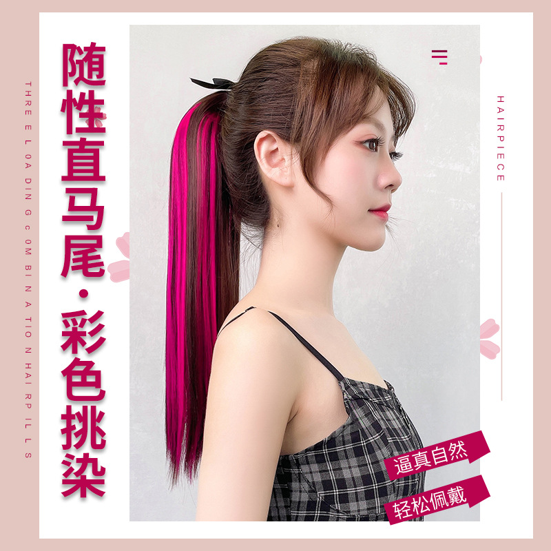 かつらのポニーテールのサブネットの赤い女子学生の中で長いショートタイプのまっすぐな髪の片のバンド式はグラデーションを染めてカラーを染めてカールをつなぎます。
