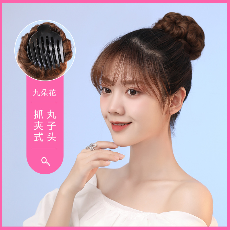 かつらの女性のショートヘアの9つの花は金のネットの赤い花のつぼみの頭をつかんでふわふわしています。
