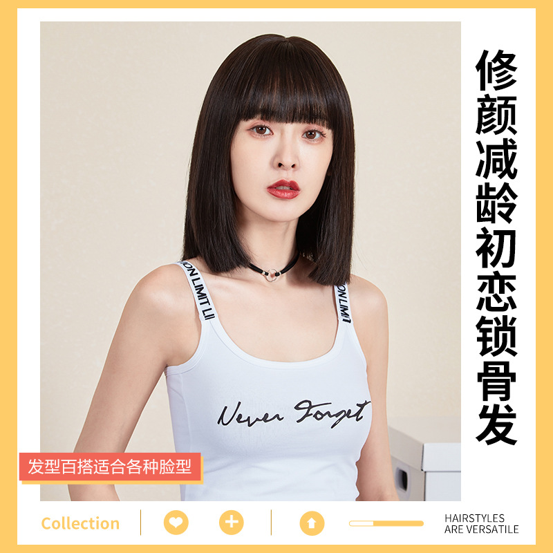 かつらの女性の夏のショートヘアの波の頭の全体の頭はネットの赤い顔の漫画の前髪を修理します。