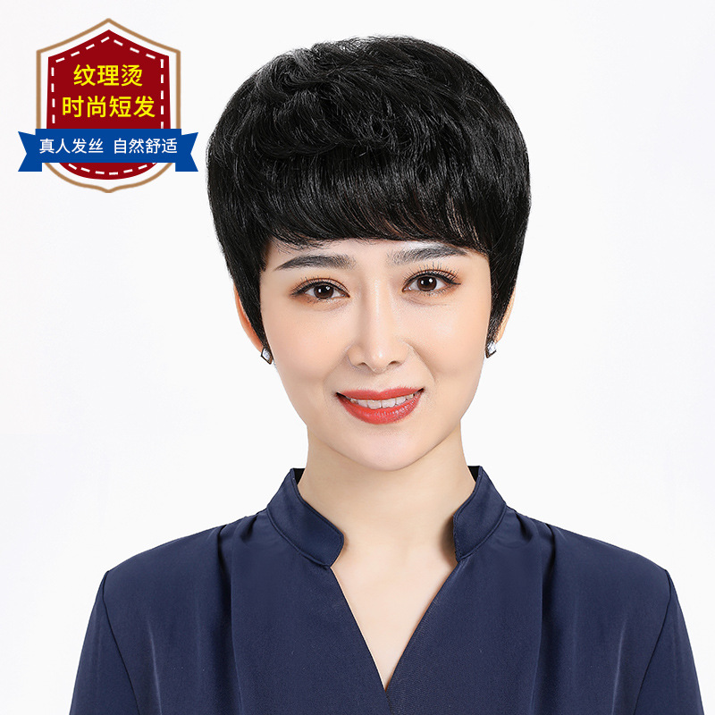 かつらの女性のショートヘアのファッションネットの赤いお母さんのタイプの中高年の木目はパーマをかけます。
