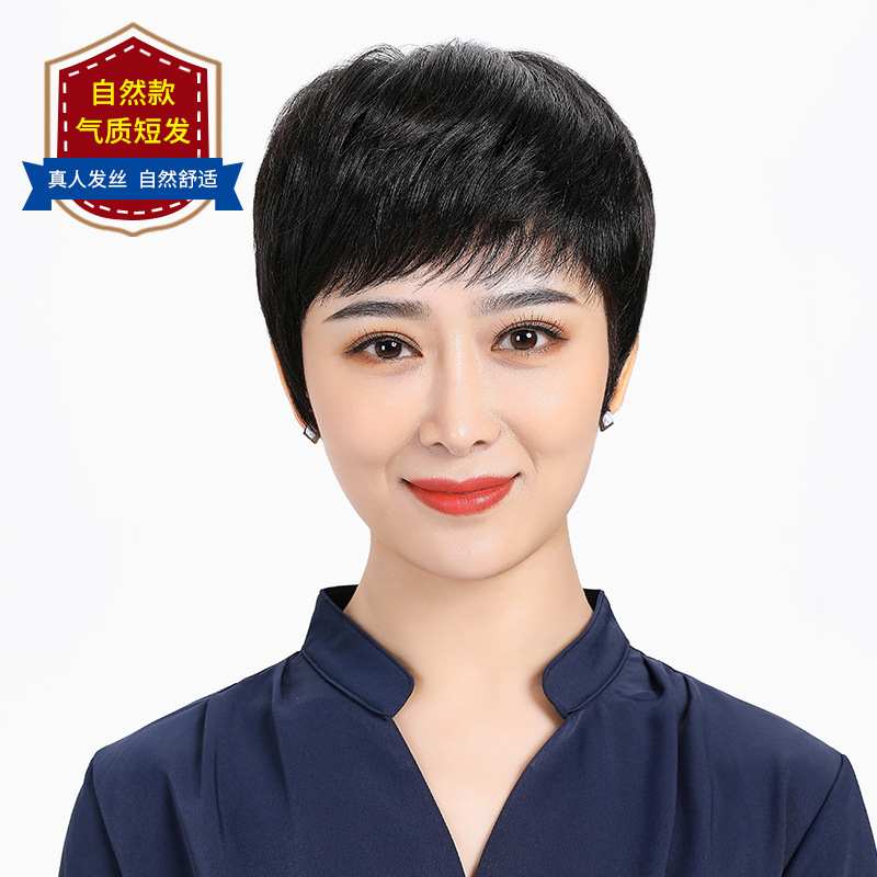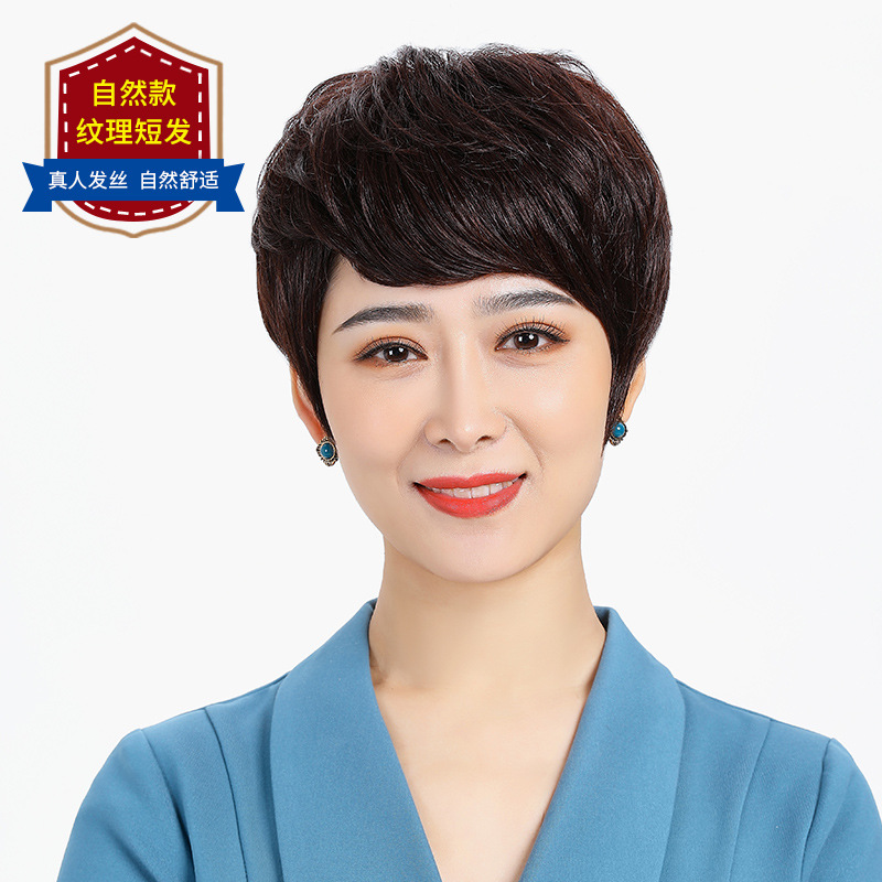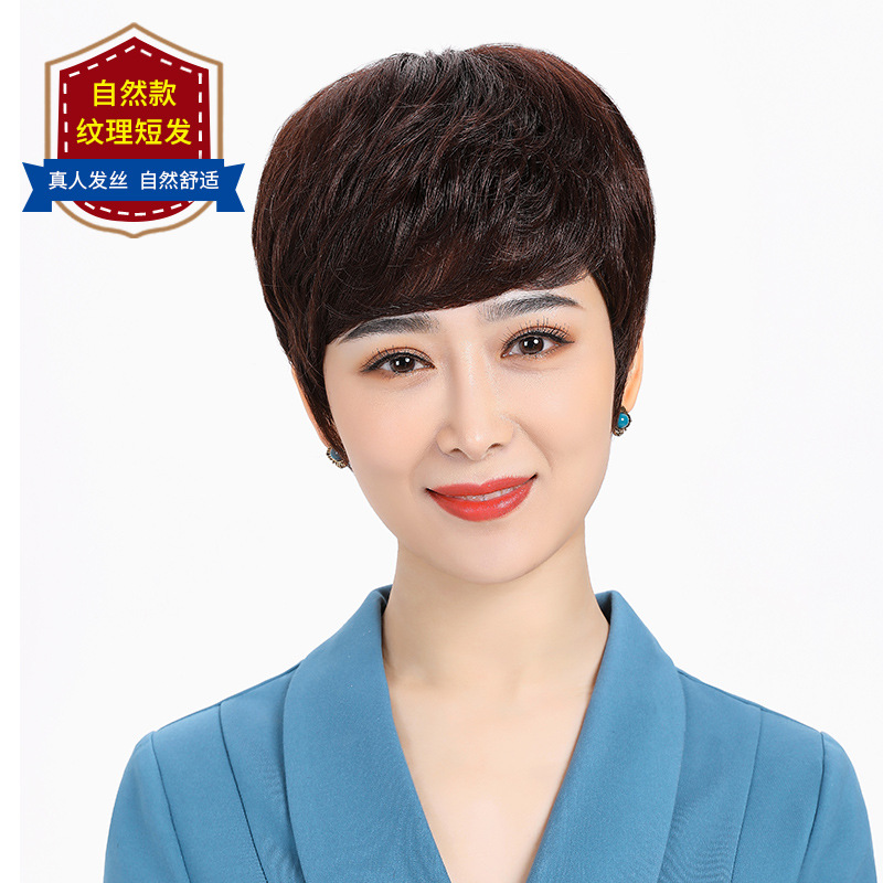 本当の髪の女性のショートヘアのかつらセットのお母さんの自然なタイプの中高年のファッションの快適な通気性のそろった前髪の全体のカバー
