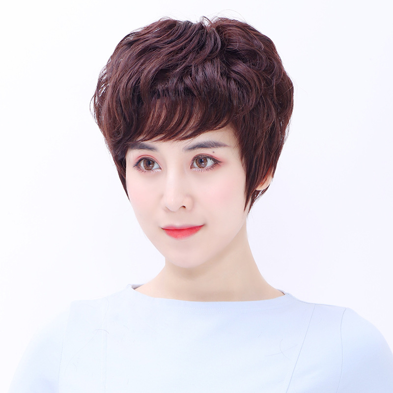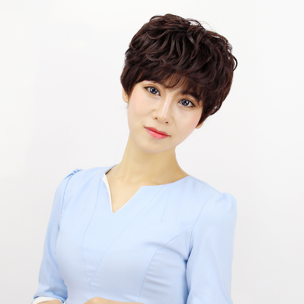 かつらの女性のショートヘアのファッション的なお母さんの木目のパーマの髪がふわふわしています。
