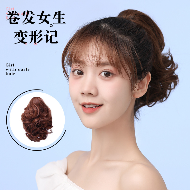 かつらの女性のショートヘアのファッション的な気質のネットの赤い巻き髪の馬尾は見えないです。